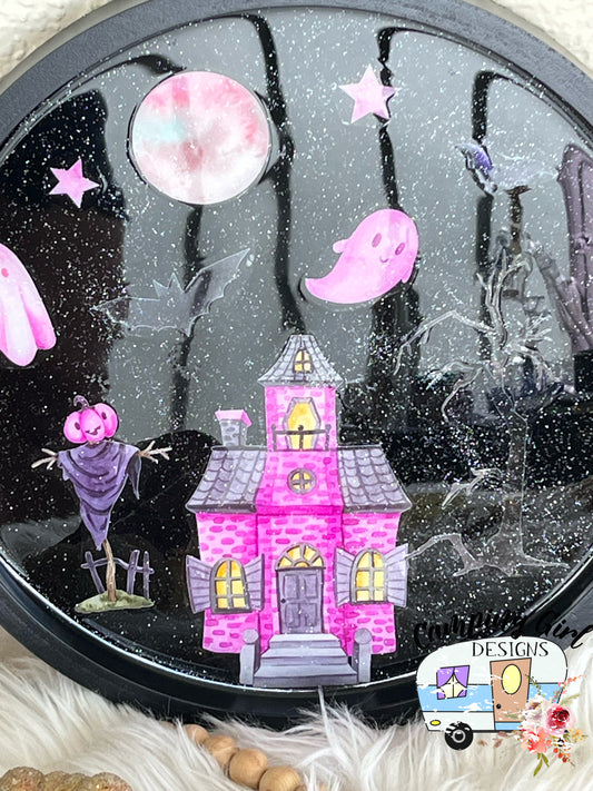 READY TO SHIP Wall Decor ~ Pink Halloween Haunted House Scene