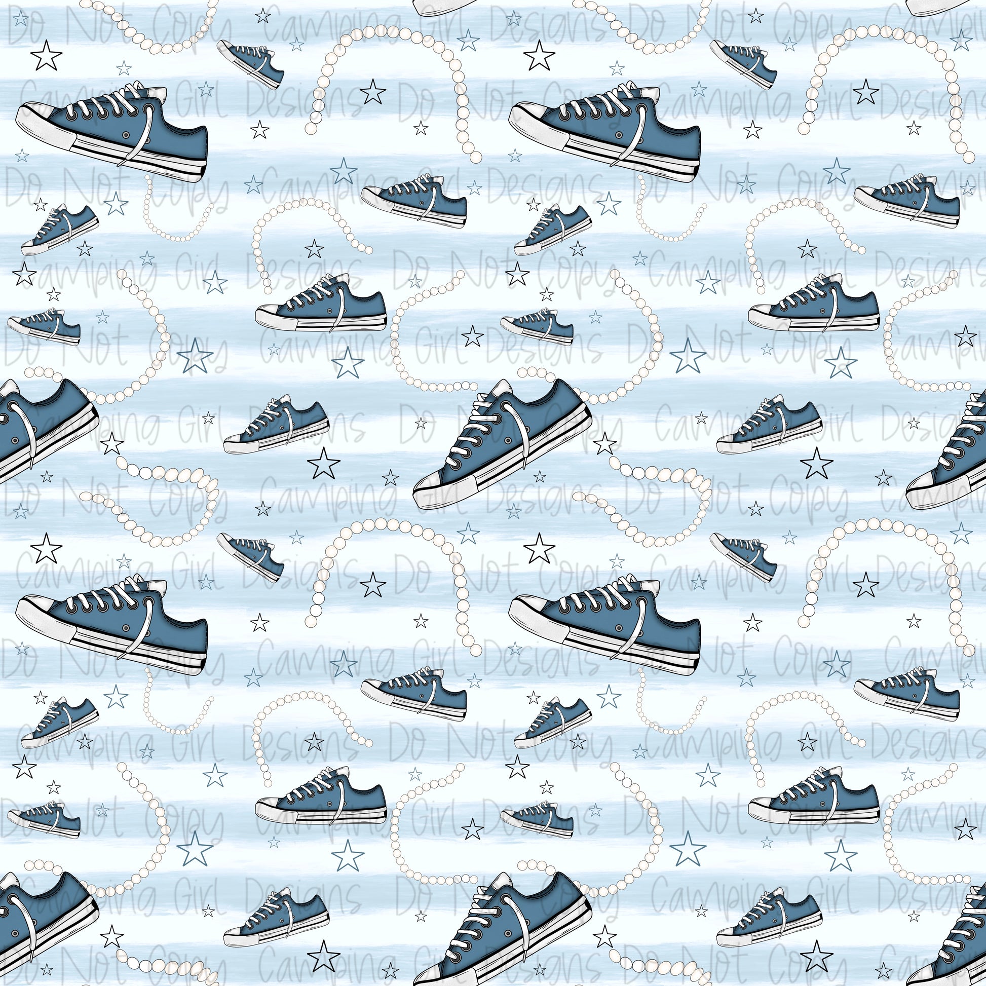 Blue Converse and Pearls 12x12 seamless PNG image - 2 sizes!!