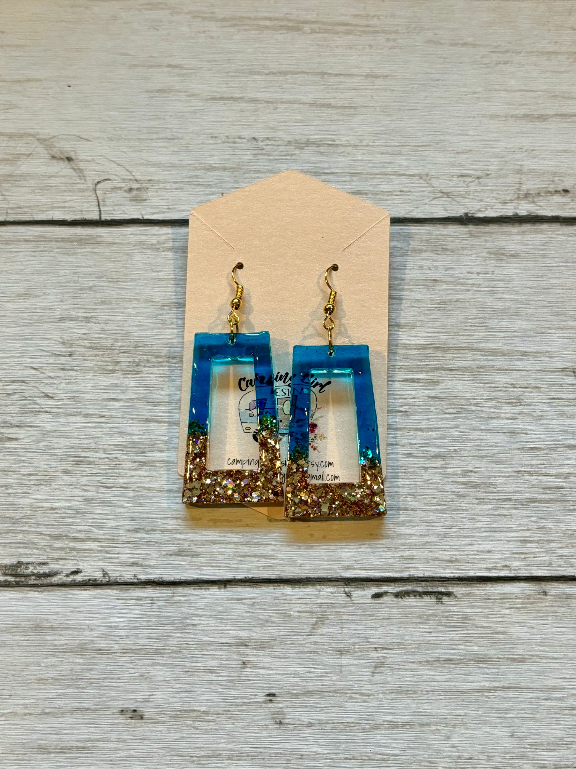 This listing is for a set of classic blue and gold resin earrings. They are the perfect accompaniment for casual or dressy wear.