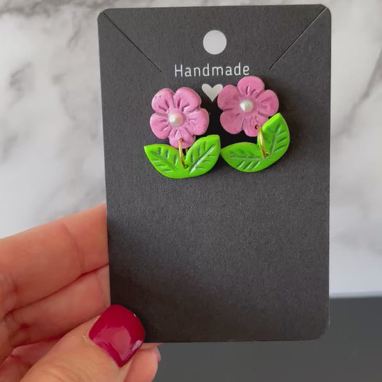 Adorable pink floral clay earrings. They are super lightweight and one of a kind!